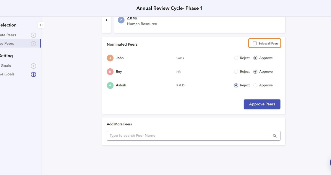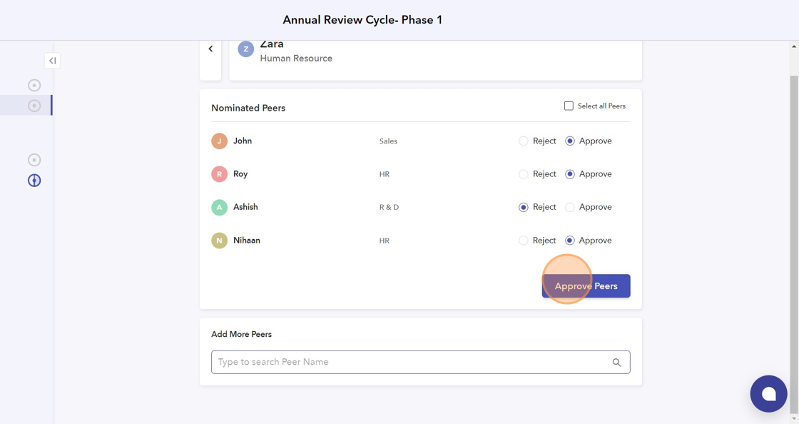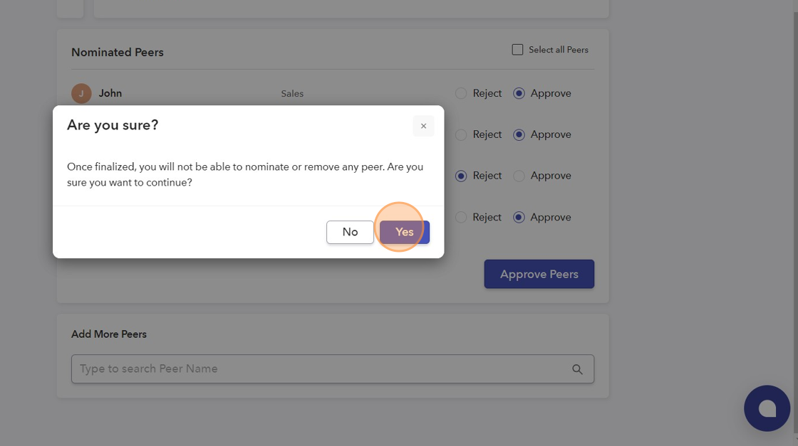 - You can click on "Select all Peers" to approve everyone, or you can manually choose whom to approve. Alternatively, you can reject them as well.