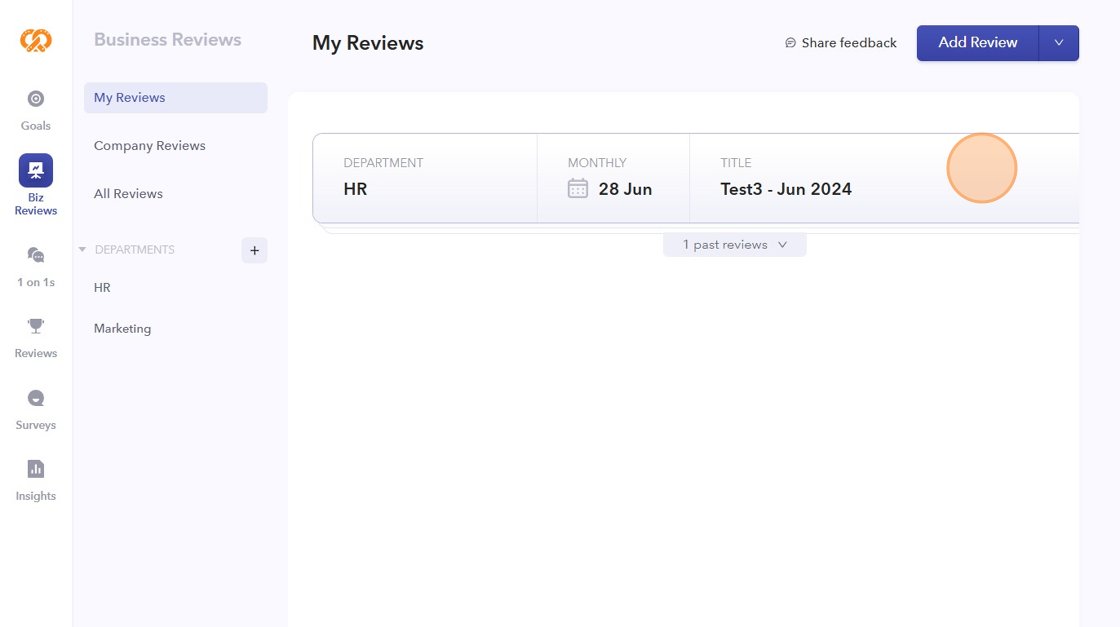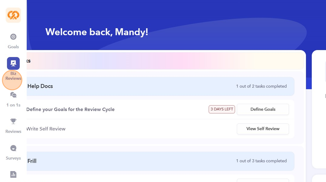 - Select the Biz Review that you want to work on.
