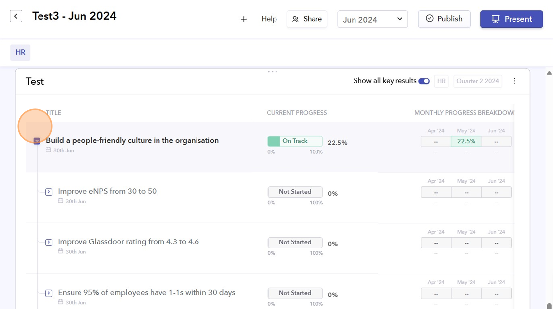 - All the goals from the selected cycle will be pulled into the Biz Review.