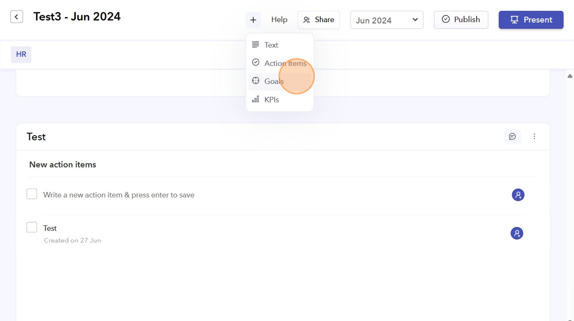 - You can change the Title of the Goals card, select the goal type (Department/Company) and Goal cycle, then click "Add".