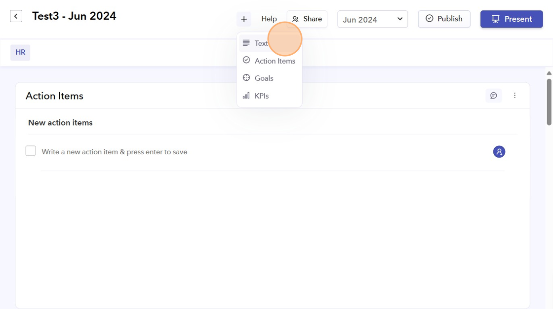 - You can add Action Items card to the Biz Reviews. You can note down all the action items from your meeting and assign them to their relevant owners.