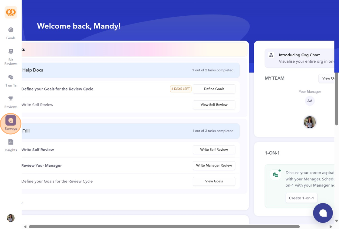 - On the left sidebar of your dashboard, click on the "Surveys" icon.