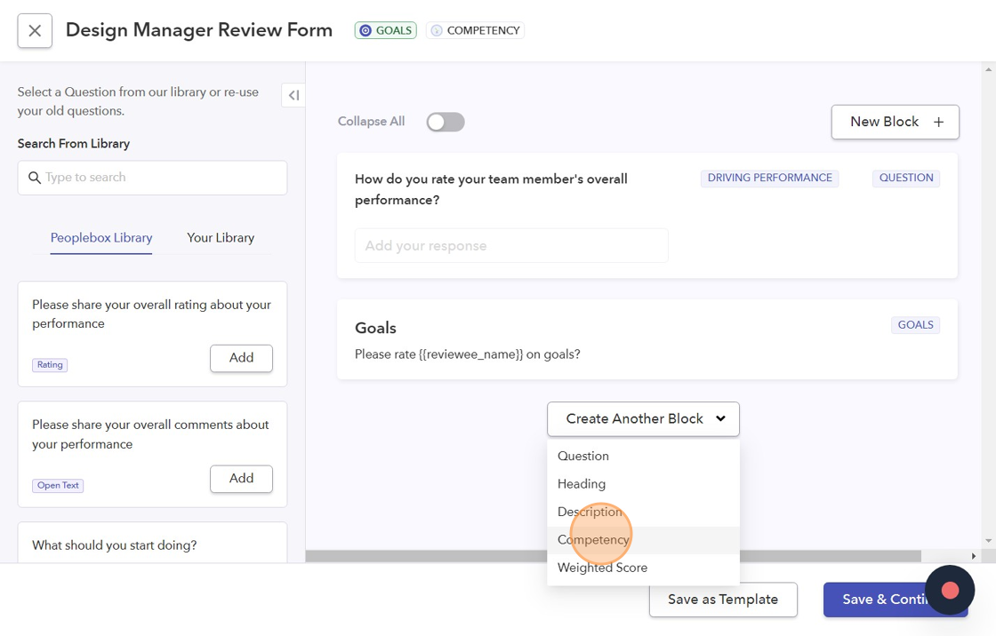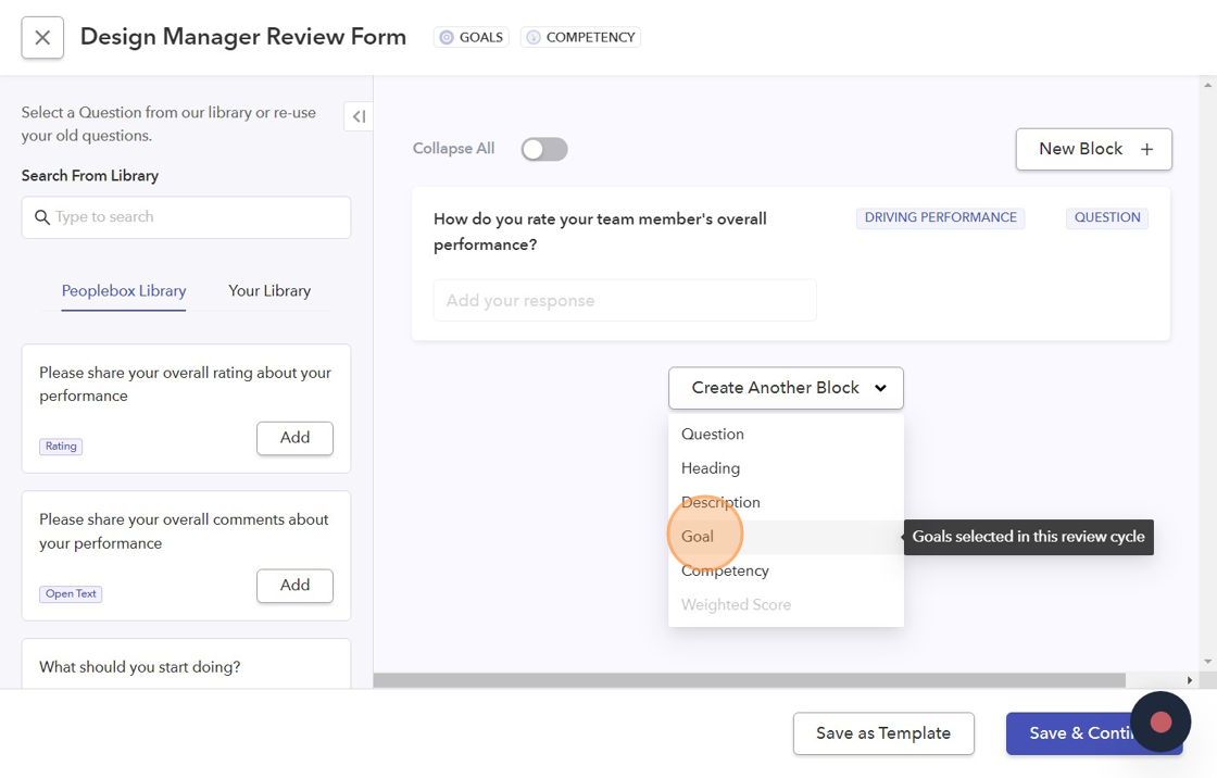 - Click "Goal" to add the goal block to the forms if goals were enabled during the configuration step.