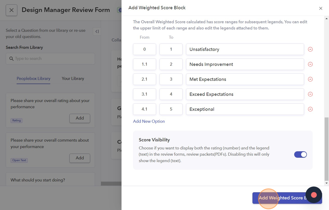 - Click "Overall Weighted Score" or "Sectional Score" to calculate weighted score.