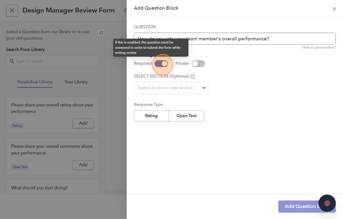 - If you toggle on the "Private" button, then the responses won't be visible to the employee.