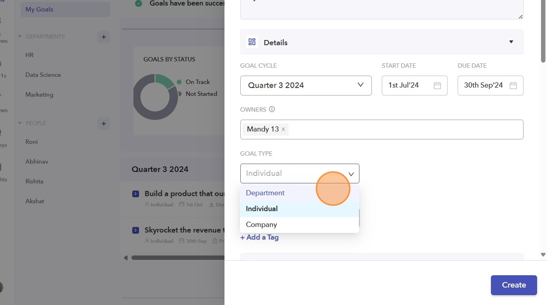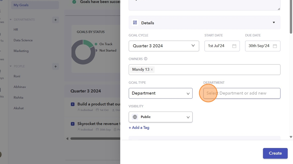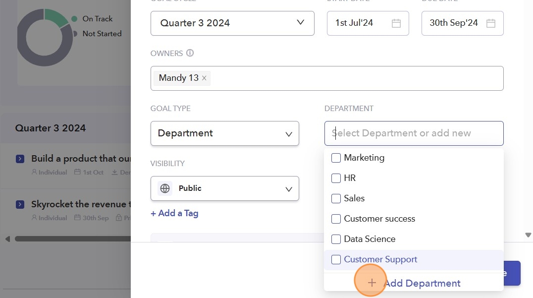 - If you select Department as the type of your goal, please choose the specific department the goal will be assigned to.