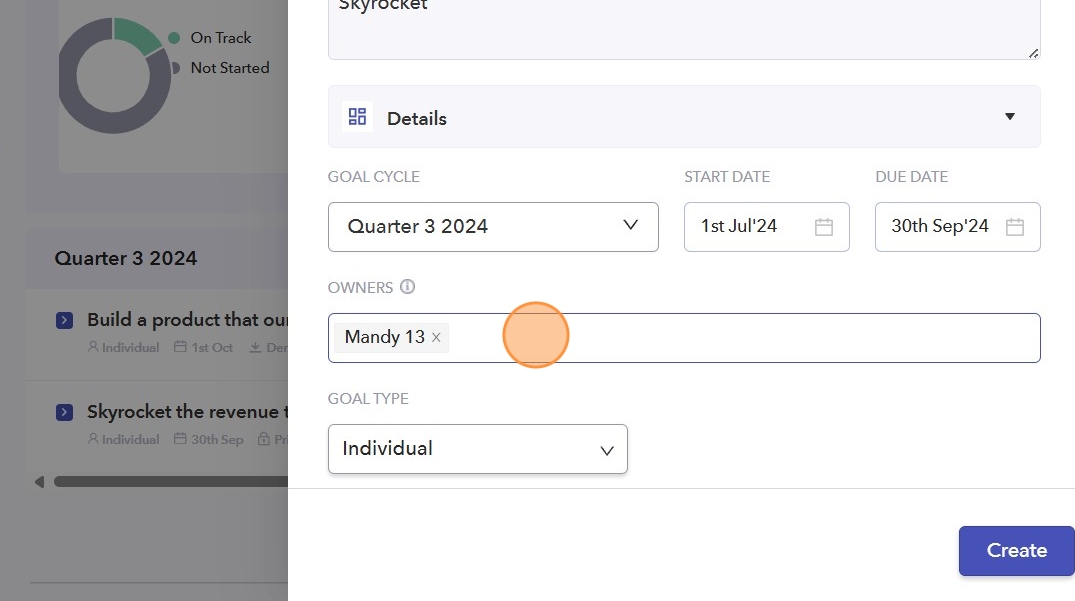 - Assign owners for the goals. It could be one person or multiple people sharing ownership of a single goal.