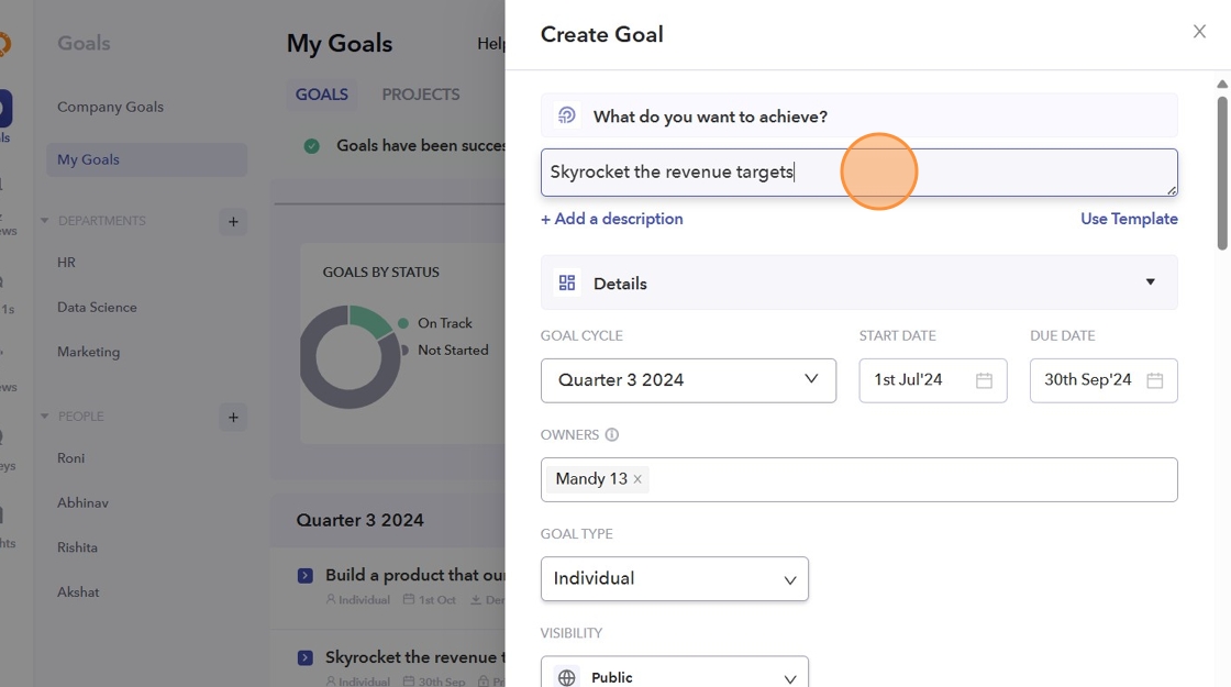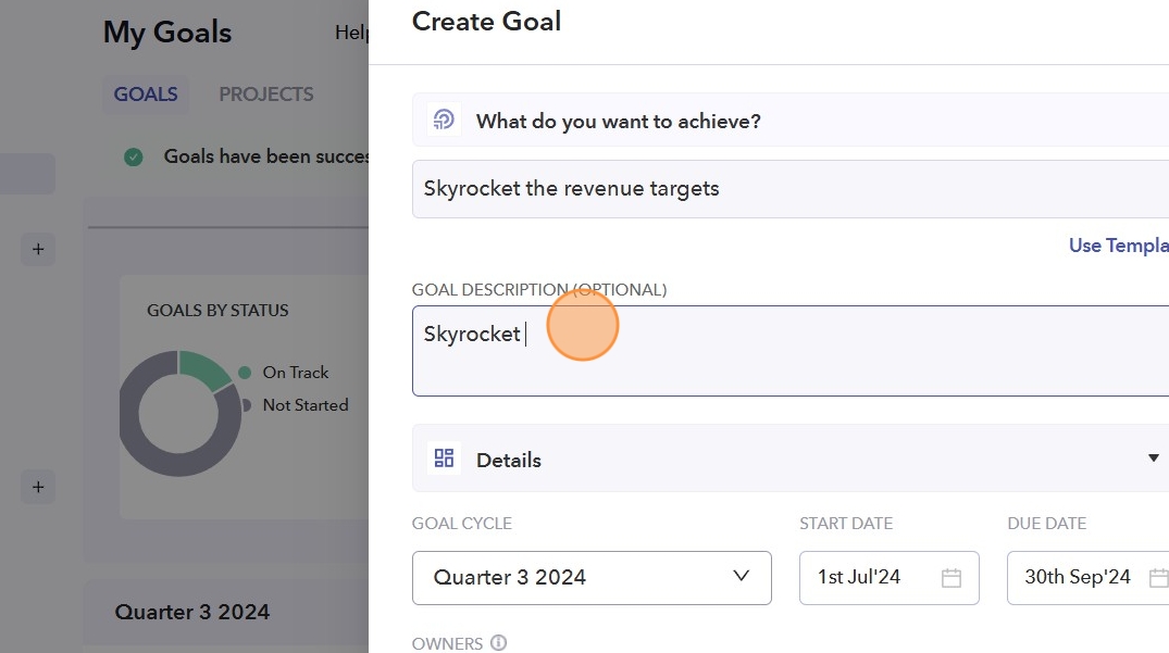 - You can keep the Goal title concise and add any related details in the "Goal Description" box.